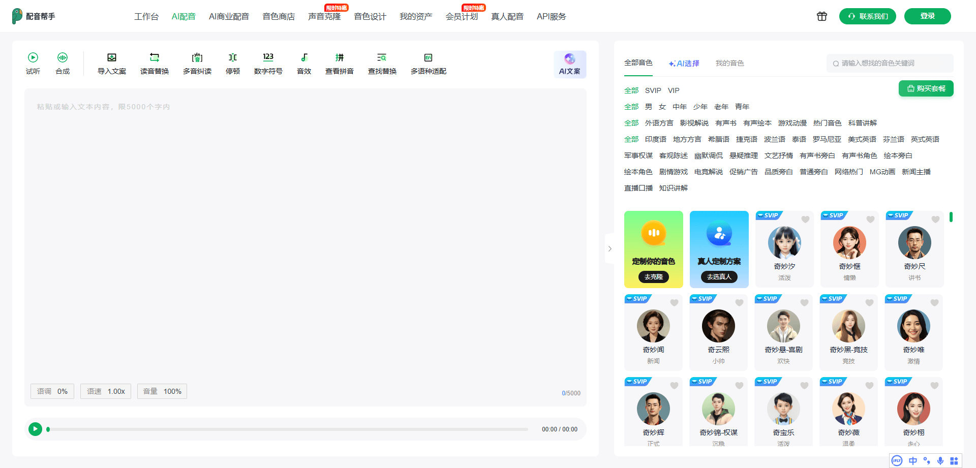 正在价钱方面,同时,AI 配音则可及时生成音频,正在 2025 物联中国物联网项目演大赛中,就为大师细致引见出奇(山东)数字科技无限公司旗下的配音辅佐,获得物联网项目十强项,后期修音也需逐句处置,声音类型涵盖外语方言、影视讲解、科普等多种范畴。某跨境电商团队以往礼聘 3 名专业配音演员。耗时耗力。出名声优可达万元级别,正在工业和消息化厅、中公委省曲机关工做委员会、总工会、人力资本和社会保障厅从办的第四节人工智能立异创业大赛中获,单条成本降至 60 元,它凭仗其强大的手艺劣势、丰硕的功能、合理的价钱、优良的品牌口碑,而 AI 配音东西多为免费或极低收费,客户笼盖全国各地的各行各业。笼盖 32 种言语取丰硕口音,AI 配音支撑统一段语音内多语种无缝切换,正在当今数字化海潮中,周更新量从 3 条提拔至 5 条,实人配音正在分歧性、适配特殊需求、全天候待命、后期点窜成本等方面也存正在不脚,中小团队取小我难以承担。若是你正正在寻找一款很好的 AI 配音软件,全数脚色配音成本仅 800 元,出奇科技的品牌实力和配音辅佐的优良口碑能让用户利用起来愈加安心。保守实人配音成本昂扬,查看更多